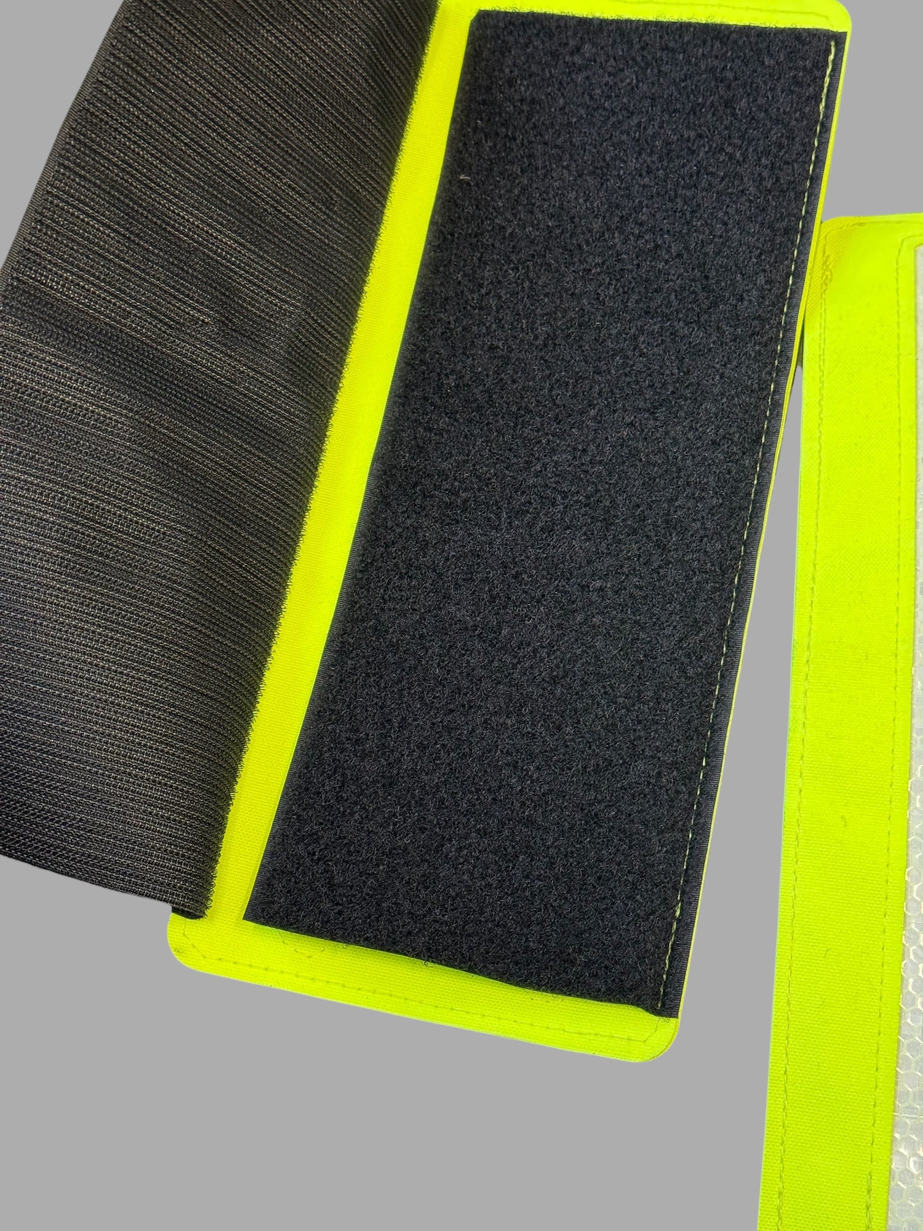 High-visibility patches intended for identification and improved visual awareness.
